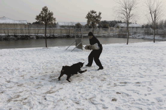 凌永平正在训练防暴警犬
