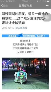 楚天都市报讯 图为:本报报道的“煎饼姐”的故事引发众多媒体和网友关注