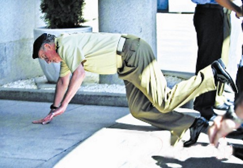 图为:西班牙国王卡洛斯在马德里视察军队总部时,不慎被台阶绊倒