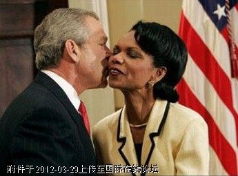 美国总统的布什与赖斯的绯闻“生命力”最为长久,情节也更富戏剧性。两人从1995年相识,一见如故。在赖斯担任布什外交政策顾问的四年里,她的忠心耿耿赢得了总统百分百的信任。美国媒体这样形容:她不仅是布什总统的顾问,更是亲密的红颜知己。从白宫到国外出访,从得州的牧场到戴维营,人们总能在总统身边看见赖斯的身影。《纽约时报》评论说:“她除了布什之外几乎不想别的事。”
