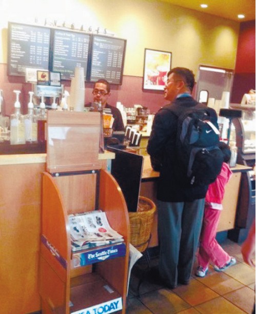 自背双肩包、穿休闲皮鞋,携着妻子和3名子女,模样更像是一个普通华人带着家人度假归来。