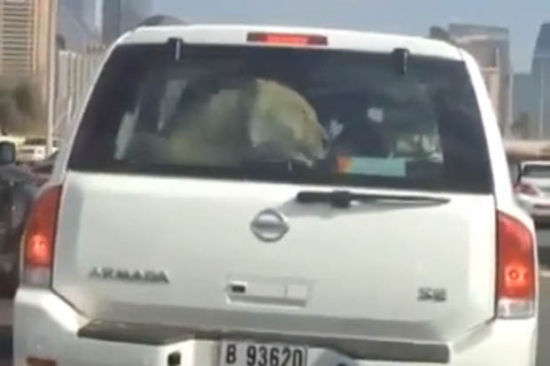 原标题:迪拜司机开车载狮子兜风 其在后座蠢蠢欲动(图)