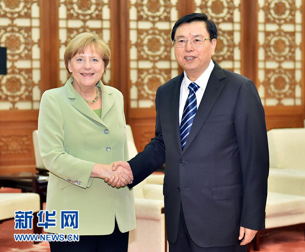 新华网北京7月7日电(记者谭晶晶)全国人大常委会委员长张德江7日在人民大会堂会见德国总理默克尔。