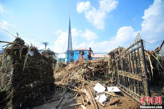 8月18日,抚顺南口前镇受灾现场。辽宁抚顺市发生了局地特大洪涝灾害。本次降雨过程呈现出雨强大、降雨量大的特点,造峰降雨历时仅11小时。共有43个乡镇街道受灾,三县共有204个村受灾。全市受灾人口36.43万人,直接经济损失超过17亿元。中新社发 于海洋 摄