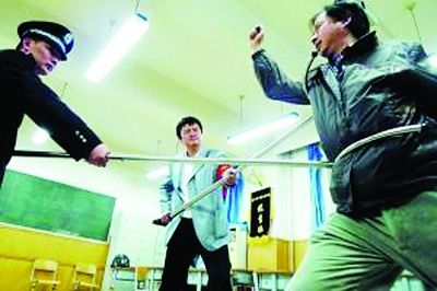 警方模拟钢叉捕贼。 视频截图