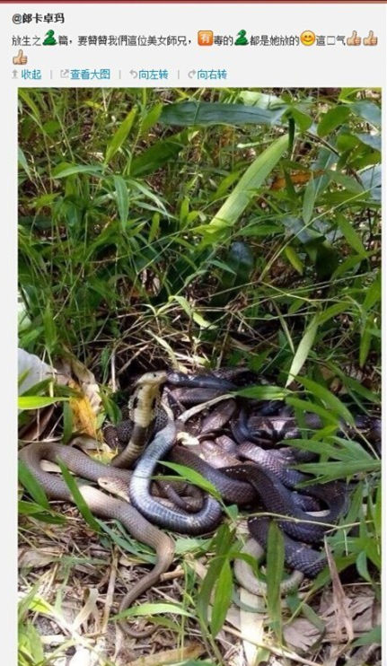 放生毒蛇猛兽帖子昨日在网上广为流传,深圳市相关负责人表示