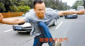 见被撞司机报警,嫌疑人为泄愤踢被撞车辆。本版图片均为视频截图