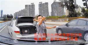 两分钟后,两名男子发现刘义车前有行车记录仪,迅速跑回车辆中,打开后备箱。“本以为对方去拿家伙,谁知他是害怕我拍到他的车牌,即刻掀起车位盖。”刘义在向警方提供的行车记录仪监控视频中写到。