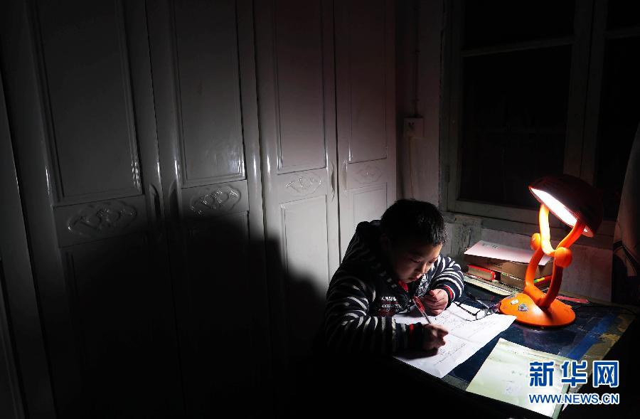 忙碌了近3个小时,干完家务后,莫双熠开始做作业(1月9日摄)。新华社记者陈子夏摄