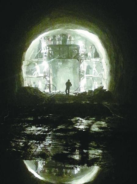 隧道内涌水量大,“最大时相当于10个标准游泳池,工人们都要穿雨衣作业”。