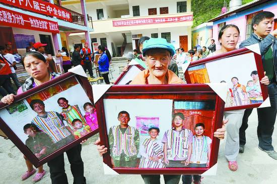 独龙族人手捧全家福。本报记者 李建泉/摄
