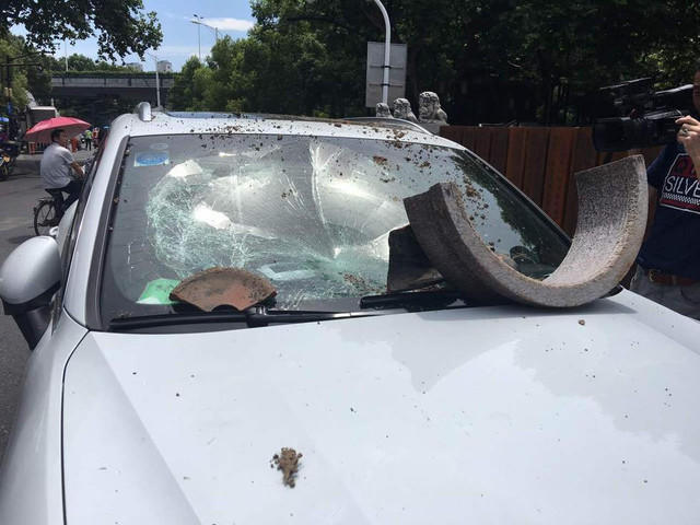 记者在现场看到,这辆被砸的保时捷车,车身还算完好,但车前挡风玻璃已全部开裂,甚至出现凹陷。车前引擎盖也有几个凹槽,车的左后视镜则整个被扯下来,露出了下面的电线,车后挡风玻璃上的雨刷器也整个不见了。从车顶到车前盖都有大量泥土散落,车身上还有一些划伤的痕迹。施先生说,这辆保时捷才买了半年多,花了113万。不过现在让石先生烦恼的事车损的赔偿问题。保险公司的工作人员告诉他说:“现在砸你车的人抓到了,保险公司就不负责赔偿,如果砸车的人逃走了,才就由保险公司来赔偿。”