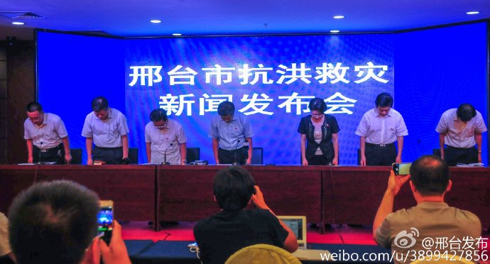 无论面对多么大的天灾,作为一级党委、政府,没能保护好人民群众生命财产安全,深感自责和内疚。我代表邢台市委、邢台市政府向所有遇难者表示沉痛哀悼,向遇难、失踪者亲属和受灾群众,向全社会诚恳道歉!