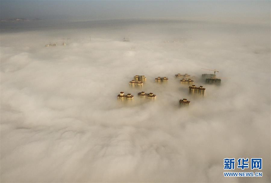11月4日,河北省邢台市出现平流雾,建筑物在雾海中若隐若现。新华社记者 牟宇 摄