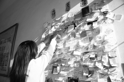 500多张告白贴纸,写满了青春的花季雨季。记者杨荣峰 摄