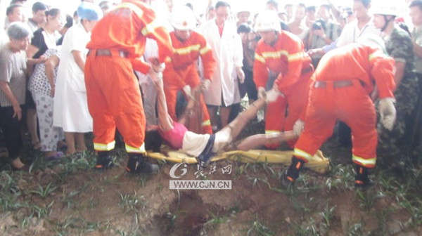 消防官兵解救被压入泥土的女青年(史忠树摄)