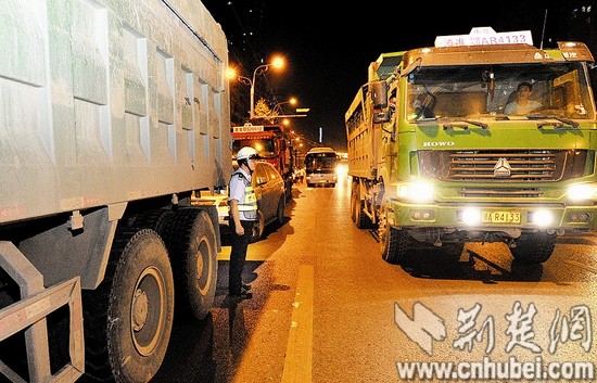 楚天都市报讯 连日来,本报对“8·17”水泥罐车车祸进行了跟踪报道,引起了武汉交警的高度重视。昨日,武汉交警出动500余警力,在全市80余个路口,分3个时段对水泥罐车、渣土车连续开展集中整治。仅下午3-5时,就查处超速、走禁止线等违法车112辆,对其中27辆超载、遮挡号牌等严重交通违法车辆予以暂扣。