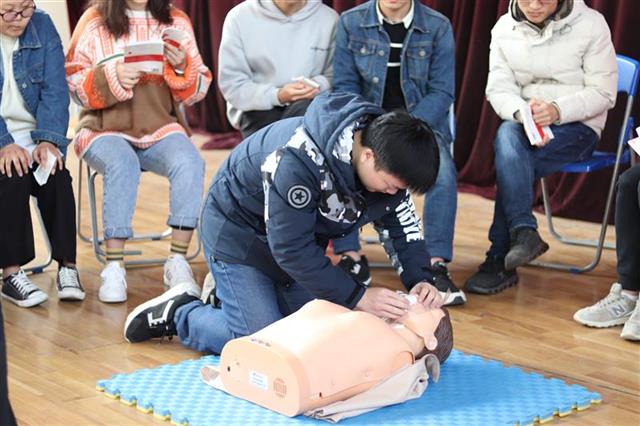“先拍拍患者的肩膀,判断其是否有意识和呼吸,如果没有马上进行心肺复苏。”“骨折包扎一定要先固定近心端,然后给患者一个大悬臂”......应急救护培训重视实践操作能力,每名志愿者都要通过严格的心肺复苏、绷带及三角巾的包扎、出血包扎及骨折固定等急救技能考核,方能结业。