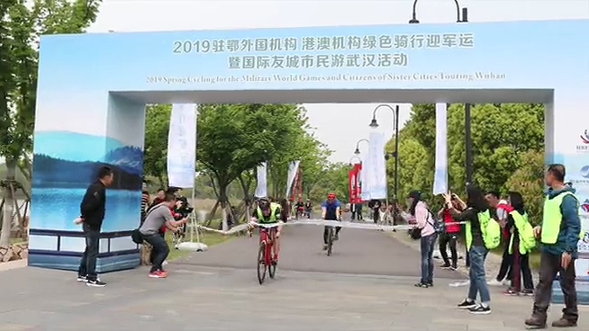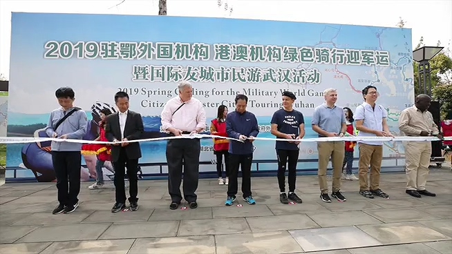 4月13日上午,2019驻鄂外国机构、港澳机构绿色骑行迎军运暨国际友城市民游武汉活动在东湖绿道举行。