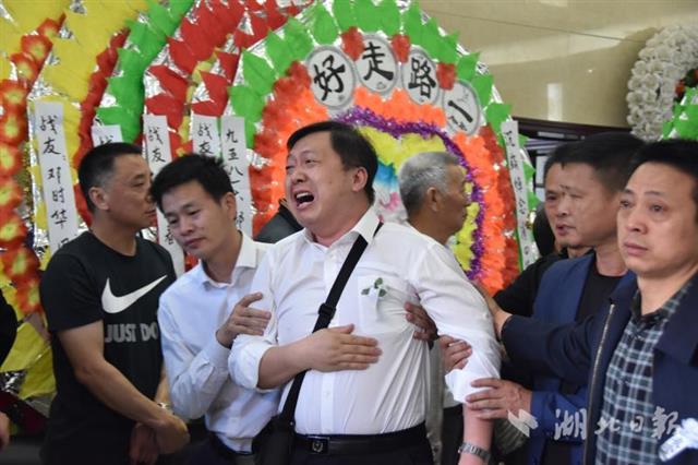 5月22日上午,亲人、好友、同事等300余人自发来到武昌殡仪馆,沉痛悼念肖四生。大家泣不成声,送好战友、好同事最后一程。