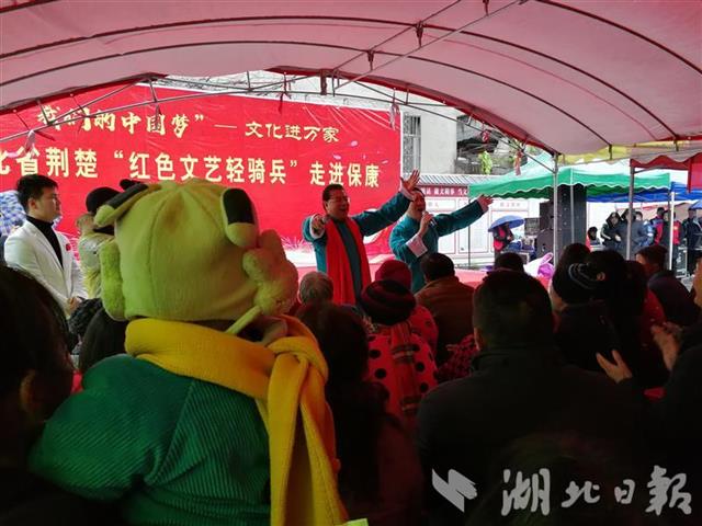 下午2点45分,从武汉开来的演出大巴车,准时到达。付远存看见车上大红横幅,写着:“我们的中国梦”——文化进万家,荆楚“红色文艺轻骑兵”。艺术家们并不歇息,马上换演出服,登台表演。