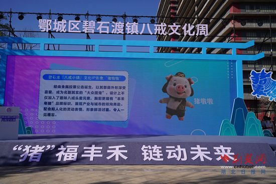 开幕式上,威风锣鼓《盛世欢歌》奏响奋进乐章,“八戒文化周”正式启动,现场掌声雷动,气氛热烈非凡。活动同步发布“丰禾年猪”品牌标识与“猪墩墩”文化IP形象,以文化赋能产业,为特色农业注入鲜活内涵,标志着碧石渡镇在品牌化建设上迈出关键一步。