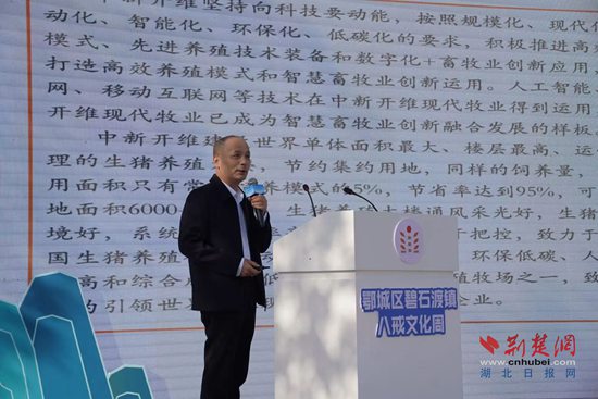 荆楚网(湖北日报网)讯(通讯员 吕雪昭 程瀚)葭月风和,白雉山青。11月29日,鄂城区碧石渡镇中新开维高楼养猪广场彩旗飘扬、嘉宾云集,“猪福丰禾・链动未来——八戒文化周”在此启幕。百余位来自政府、企业、高校的代表及浙商精英齐聚一堂,共赴这场文化与产业交融的盛会,见证鄂城乡村振兴与浙鄂合作的崭新起点。